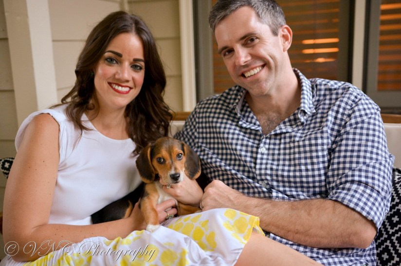 So, when I am granted the opportunity to photograph a loving couple and their furry pride & joy, I am going to be happier than a corgi on a car ride! For this session, we captured the family portraits of our dear friends Jason & Jackie and their pup named Kenny Loggins! This little beagle is definitely “Alright” and tried to “Fly Into The Danger Zone” when he ran into the street during our session. But after all was said and done, we were reminded that these 2 make the perfect parents for their fun-loving fur baby!