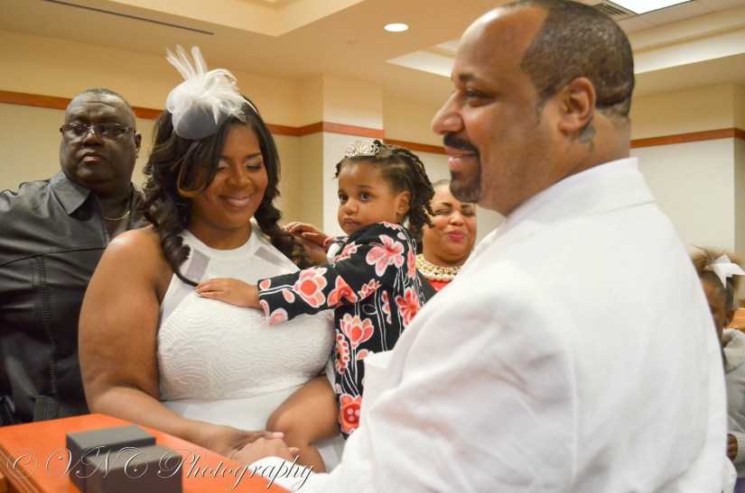 Sometimes, simplicity is key and can be just as sweet. That was certainly the case when we captured the Fields wedding at the Dekalb County Courthouse. We were especially honored to photograph this union since the groom – James – was a former coworker. Surrounded by family, friends and their adorable daughters, these two showed that their longtime love story was ready for the next chapter.
