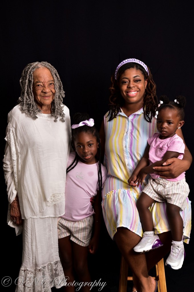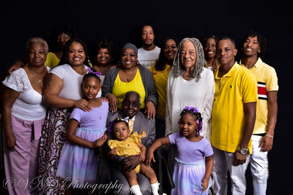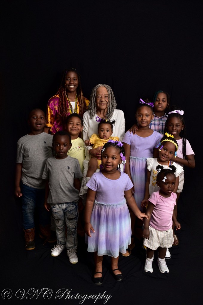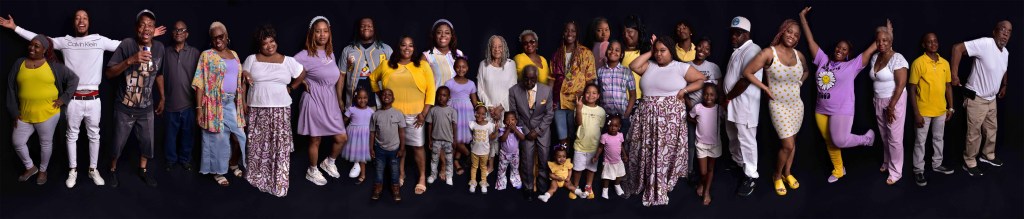 One thing that is paramount to me as a photographer is to capture as many moments as possible with family members, young & old. Although it can be difficult to think about, one day, all we’ll have left of our loved ones are memories. If I can provide photos of those moments, it definitely gives the snapshots purpose, as well as the family sweet, funny & poignant moments to look back on. So when I was chosen to capture the 36-strong Moore family, I was excited to photograph every member, from a few months old to the octogenarians. Since it was Mother’s Day weekend and we had such a large group, we decided to photograph the session in the matriarch’s carport at her home (it’s amazing what a black backdrop and proper lighting can do!). The final result: beautiful images of the Moore family that they will cherish for generations to come.